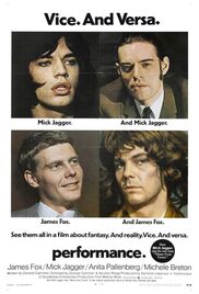 ![]() | Performance 1970 (1970) (BluRay) A violent East London gangster undergoes a transformation of identity while hiding from his former colleagues in the home of a jaded Bohemian rock sta ...<more>